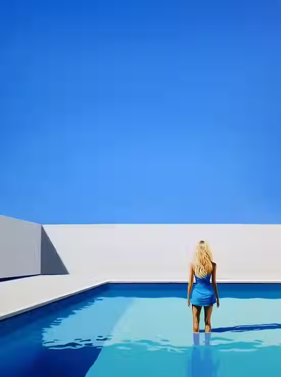 Hugo Pondz unfolds a sky blue universe that awakens the viewer with great pictorial breaths of fresh air. He invites contemplation in an almost minimalist world where one can project oneself and breathe freely. Around the pool, in New York, on the plains of a golf course or in the aisles of a parking lot, all of Hugo Pondz's paintings are imbued with a unique depth.